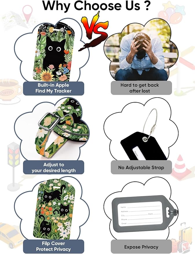 Luggage Tags Built-in Anti-Loss Tracker, Luxury Leather Luggage Tags for Suitcase, Travel Bags, Backpacks, Travel Organizer for Lost Baggage Prevention (Prairie Cat)