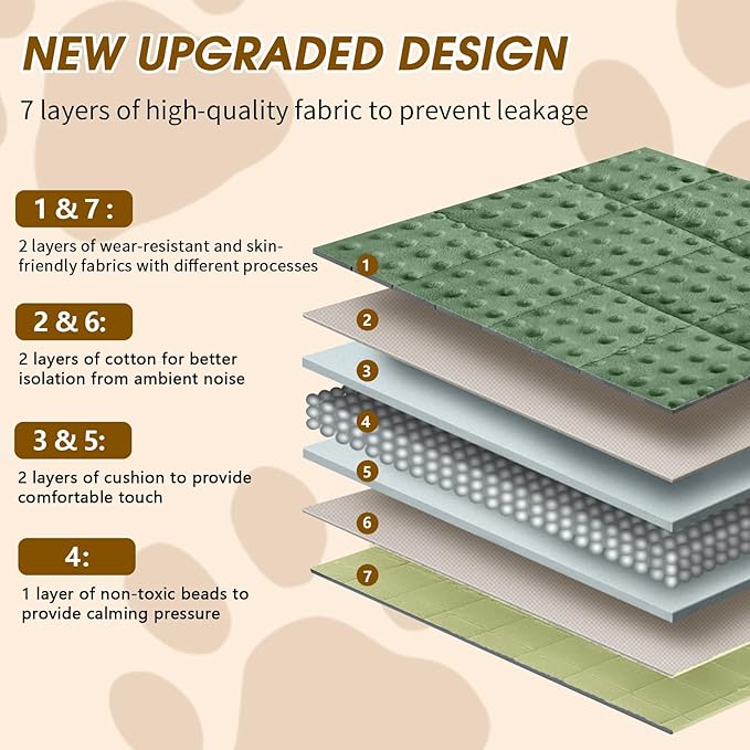 - RELIABLE COMFORT WEIGHTED COMFORTER:This soft and warm moss weighted pet blanket adopts a 7-layer structure design. Glass beads are safely locked in each small pocket to prevent movement. The diamond squares ensure that the weight is evenly distributed on all parts of the pet's body. Pets of different sizes, such as Corgi, Beagle, and Labrador, can choose the heavy blanket that best suits them according to their body size and experience the feeling of being wrapped.