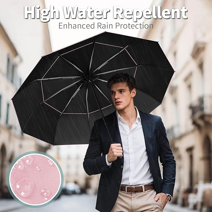 - 【Double Vented Canopy】Our large umbrella combines 10 reinforced aluminum shafts and flexible fiberglass ribs with a high-density canopy, delivering superior wind and rain resistance. The secret? An aerodynamic double-vented canopy that channels gusts through—so this windproof umbrella stays intact when others flip inside out!