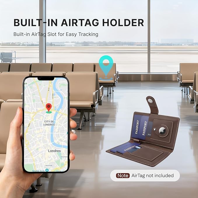 - AirTag Slot Passport Wallet: This leather Family travel passport holder features a built-in AirTag slot, combining security with style and keeping your AirTag firmly in place. No matter where your belongings are, they can be easily found