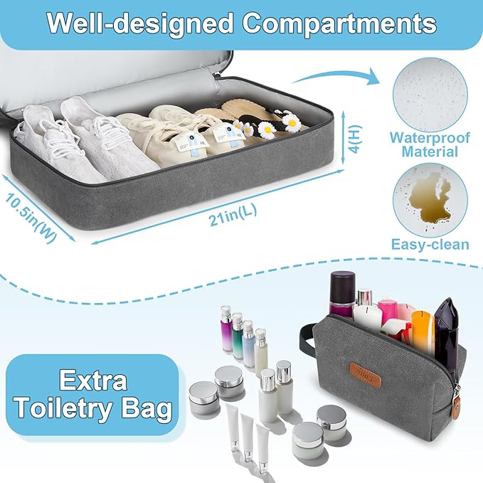 - 2pcs Expandable Canvas Travel Duffle Bag: This duffle bag(Size: 21"L*13"H*10.5"W) set comes with a toiletry bag. Designed for comfort travel. This versatile design offering extra packing flexibility, making this duffle bag the perfect companion for any journey. This mens travel bag features a paded handle and a soft, adjustable and detachable shoulder strap. Choose from hand-held, shoulder, or cross-body carry modes. Suitable for both men and women.
