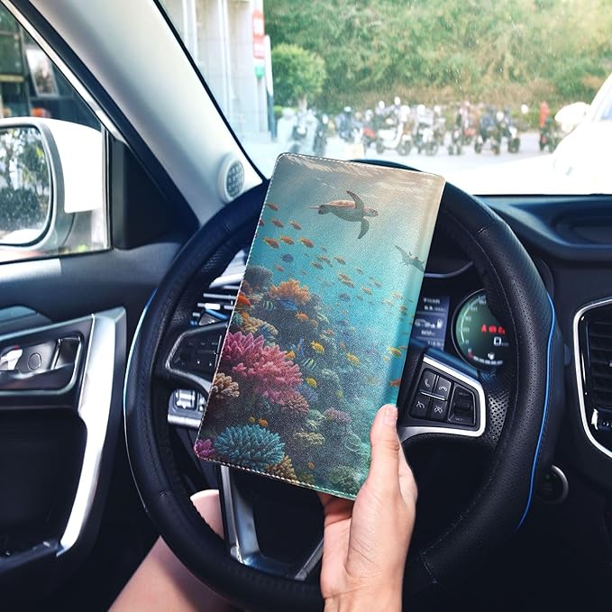linqin Car Registration and Insurance Card Holder, Tropical Coral Reef Glove Box Organizer Card Document Wallet