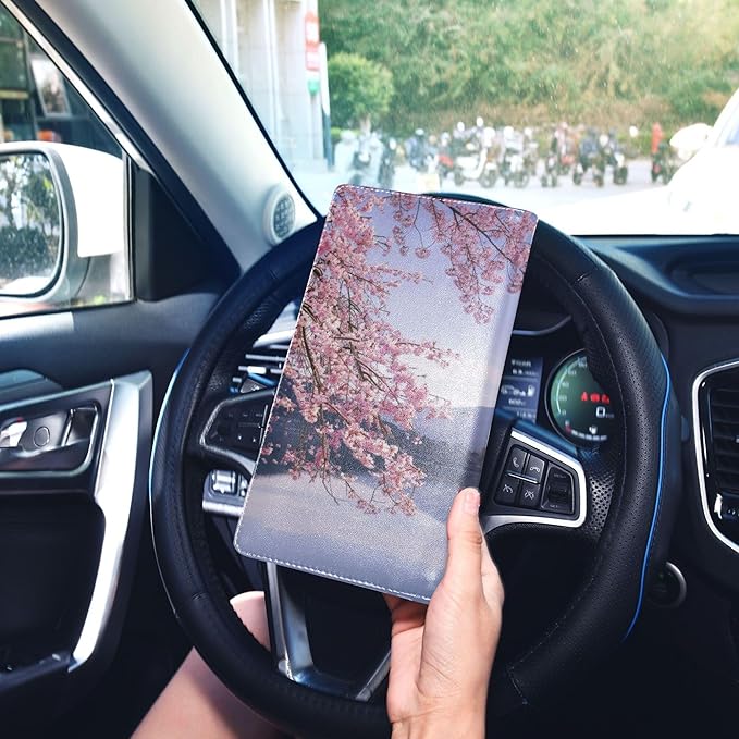 linqin Car Registration and Insurance Card Holder, Fuji Moutain Cherry Blossom Glove Box Organizer Card Document Wallet