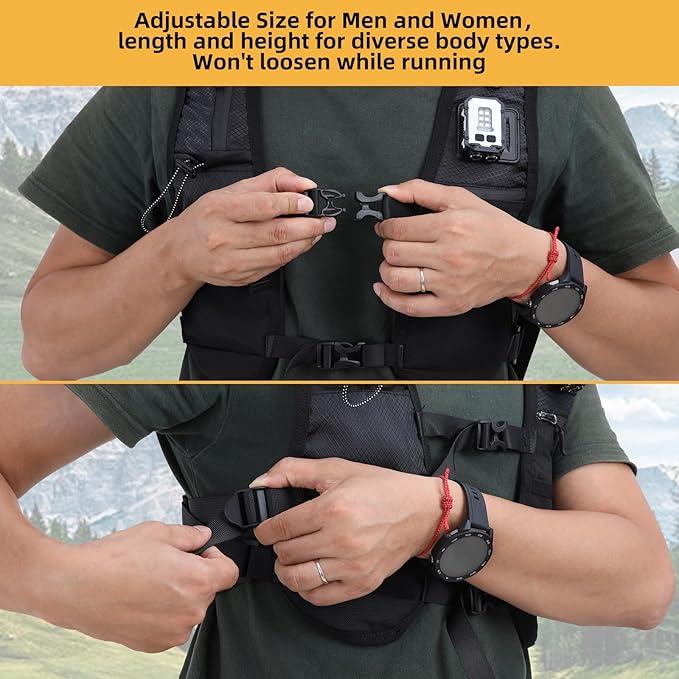 - Ergonomic Design: Running hydration vest come with 2 adjustable chest strap and 3 buckle side design, offer a secure customized fit with a chest range from 33-48 inches