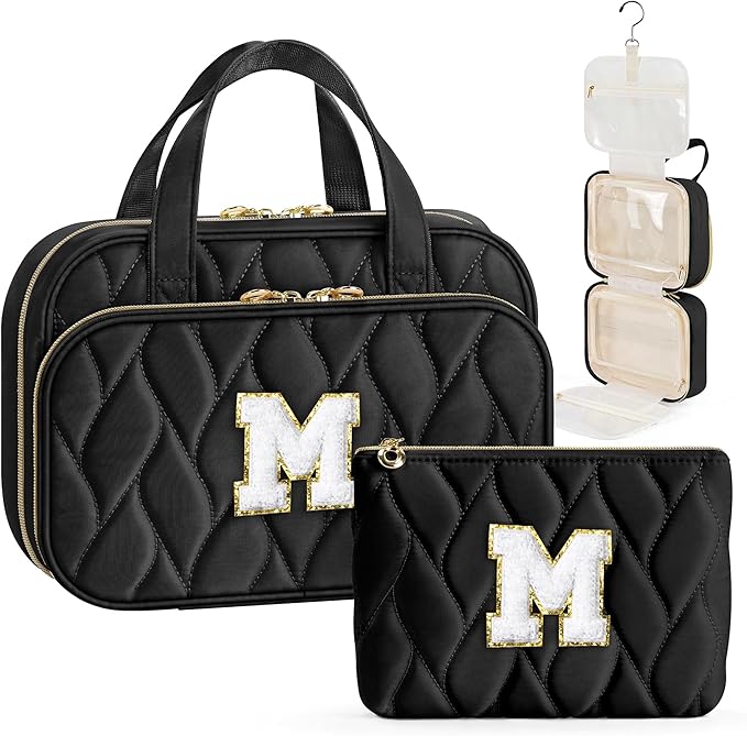 YOOLIFE Hanging Toiletry Bag for Women - Travel Toiletry Bag Makeup Bag, Portable Toiletries Cosmetic Bag, Airplane Travel Essentials Black - M
