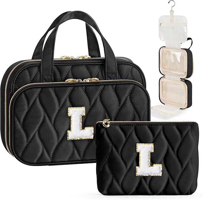 YOOLIFE Hanging Toiletry Bag for Women - Travel Toiletry Bag Makeup Bag, Portable Toiletries Cosmetic Bag, Airplane Travel Essentials Black - L