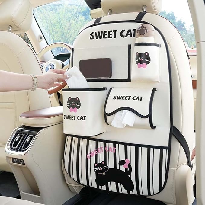 - Updated Sturdy Seat Protector : This car backseat organizer is made of leather material, protect your seats from scratches, spills, stains, scuff marks, mud, dirt, and getting worn out