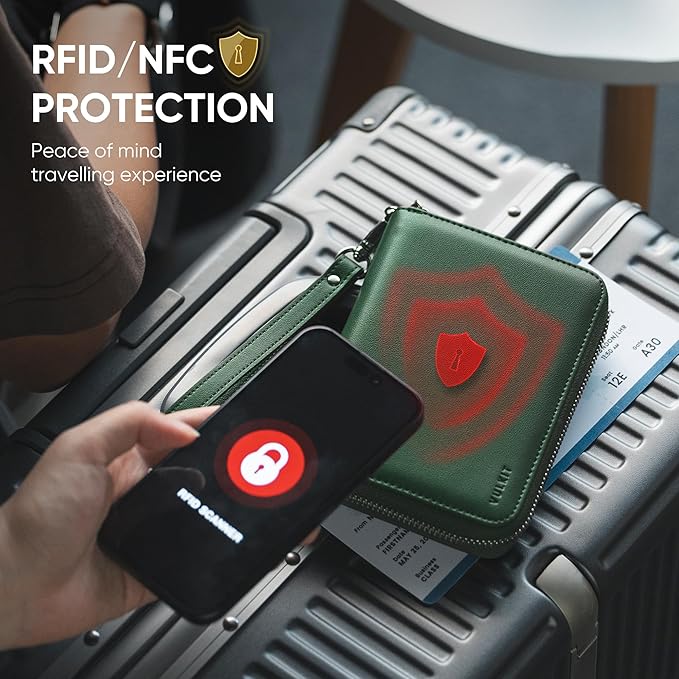 - RFID/NFC PROTECTION: Professional tested RFID/NFC blocking material & technology keep you safe from fraud skimming. Great safeguards for international travel and business trips.