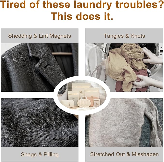 - 【Keep Clothes Like New】Nyzqry mesh laundry bags protect delicate clothes from tangling, snagging, pilling, and color transfer during machine wash & dry. Perfect for bras, sweaters, shoes and fine fabrics — keeping them looking new.