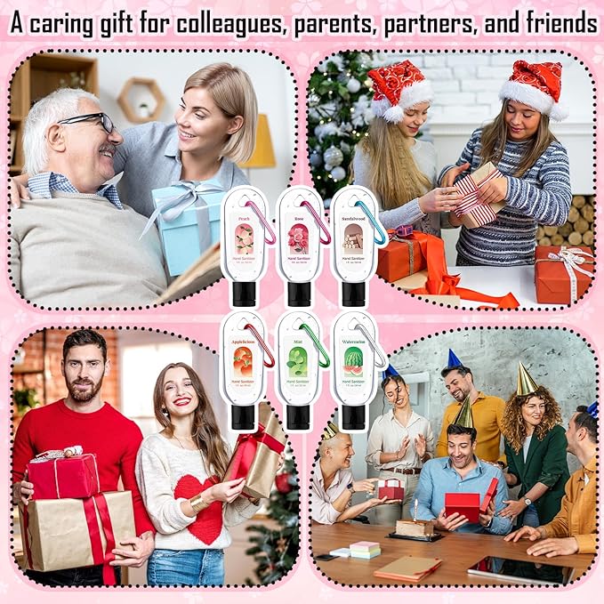 24 Pack Scented Hand Sanitizers Keychain Gift Bulk Travel Size White Hand Sanitizer Gel for Christmas Wedding Party Favors Treat Goodie Bag Stuffer Coworker Nurse Birthday Gifts