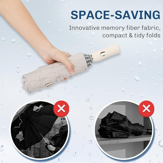 - 【Truly Ultra-Compact Design 】❌Tired of bulky folding umbrellas that refuse to fit in your bag? ✅Ours is different. Engineered with advanced memory fabric, it collapses back perfectly every time. When folded, it measures just 2.4* 2.4*12.8"—smaller than most standard folding umbrellas. And at only 0.8 lb (12.8 oz), it’s barely heavier than your phone. Ideal for business travelers and daily commuters