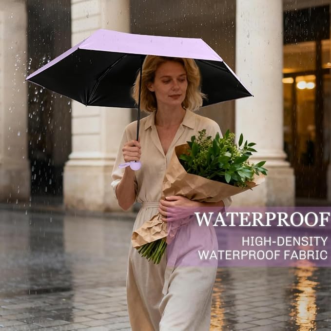 • 【Sturdy Frame for Daily Use】Designed with 6 reinforced fiberglass ribs and metal frame, this compact umbrella maintains flexibility while standing up to light wind and drizzle. Of course, we can't expect a tiny & superlight umbrella to not flip in the wind if we want it to be flexible, and fit in purse