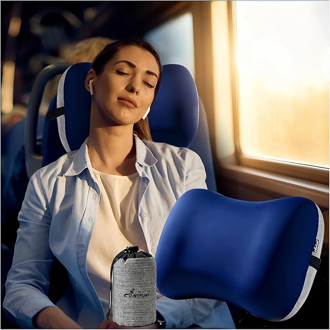 Inflatable Neck Pillow for Travel Camp Beach Small Compact Backpacking Essentials Hiking Gear Rv Car Travel Trailer Lake Day Roadtrip Road Trip Motorhome Glamping Overlanding Deployment Accessories