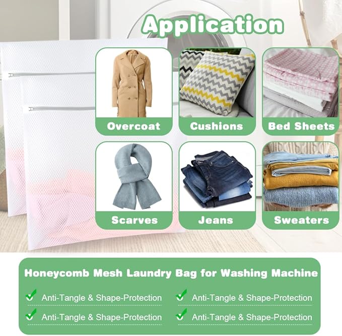 - DURABLE AND REUSABLE - Made of breathable polyester fiber material, the net washing bags are durable and tear resistant. Fine mesh to protect more delicate clothing/lingerie