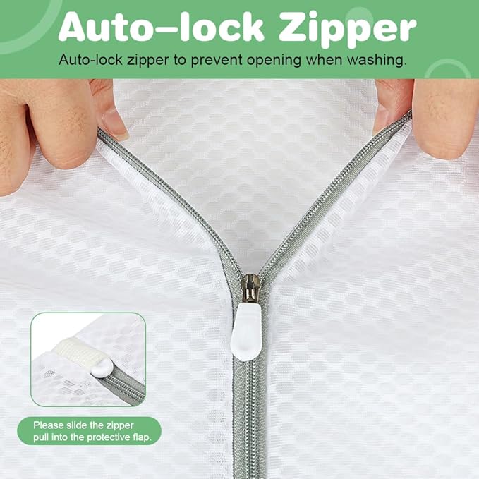- AUTO-LOCK ZIPPER: Auto-lock zipper to prevent opening when washing. Zipper cover to prevent scratching the washer. Mesh bags can protect your clothes from getting tangled and snagged