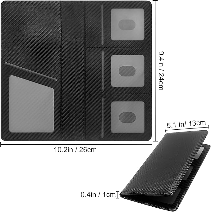 - 🔘 Sleek Carbon Fiber Exterior This premium car registration and insurance holder features a cutting-edge carbon fiber surface that resists fingerprints while giving your glove box organizer a high-tech upgrade. The ultra-durable construction ensures long-lasting protection for your vehicle registration and insurance card holder essentials