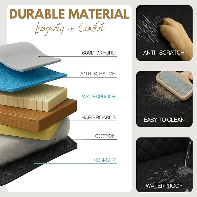 - Anti-Slip & Secure Fit for a Safer Ride: No more slipping and shifting! Our anchor system, non-slip rubber backing, and removable support plates ensure the cover stays firmly in place, keeping your pet safe and secure while you drive.