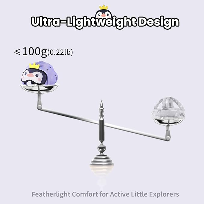 - *Ultra-Lightweight & Breathable Design for All-Day Play* Designed with 8–10 honeycomb air vents for maximum airflow, this toddler safety helmet keeps kids cool and fresh during summer rides or outdoor adventures. Weighing under 100g — 20–30% lighter than standard helmets — it provides full protection without adding neck strain or discomfort