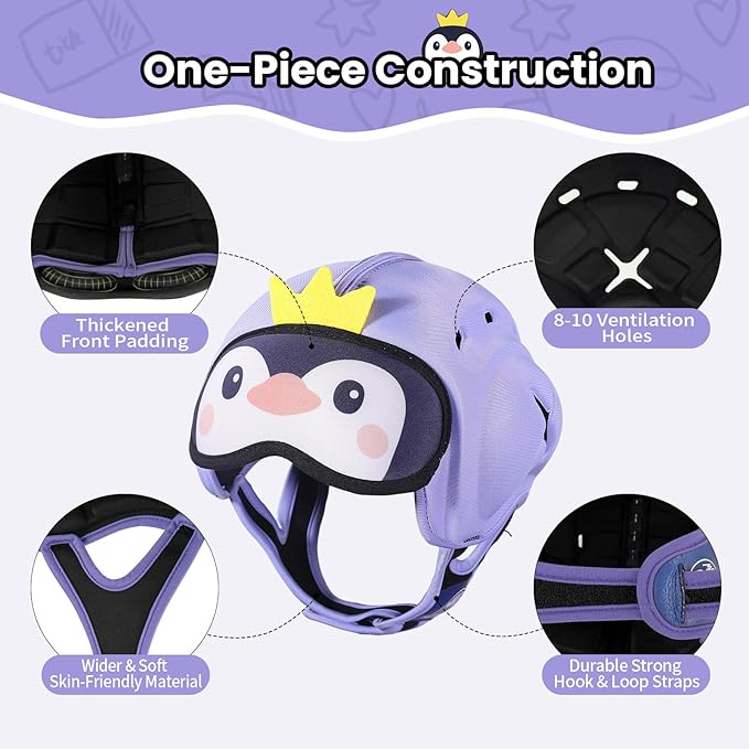 - *Thickened Forehead Cushion Pad for Superior Comfort* Upgraded with a deeper, wider, and thicker forehead pad, this baby helmet fits snugly and comfortably around your little one’s delicate head. It helps prevent redness or soreness caused by thin padding by evenly dispersing pressure, ensuring lasting comfort even with all-day wear