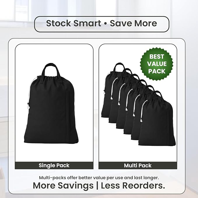 LFH Home Large Premium Cotton Canvas Laundry Bag with Drawstring and Handles Heavy Duty, Multi-Use, and Washable for Home, Travel, College or Storage 20x30 (Pack of 2)-Black