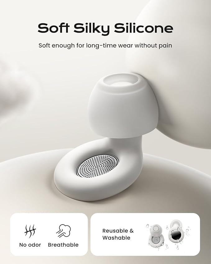 ESSAGER Ear Plugs for Sleeping Noise Cancelling, Reusable Silicone Earplugs for Sleep, Deep Focus, Travel, High-Fidelity Hearing Protection, 45-49dB Noise Reduction,White