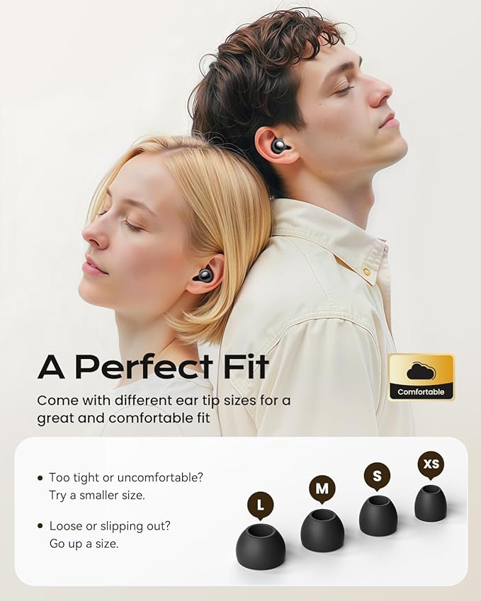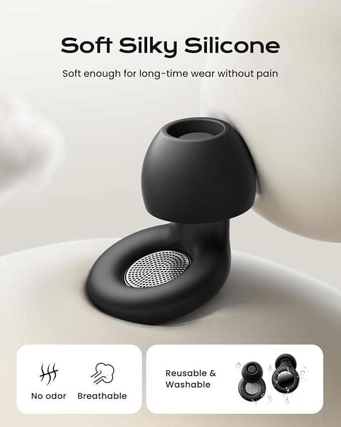 - Designed for Comfortable Wear: Noise cancelling ear plugss are made of skin-friendly soft silicone, which has a fine and gentle touch and can gently fit the contour of the ear canal. The earplugs are equipped with 4 pairs of sizes (XS/S/M/L), ensuring precise matching from adults to teenagers.Earplugs are perfect for side sleepers , allowing them to enjoy a peaceful night's sleep. The earplugs remain firm and won't fall off, and there will be no swelling or pain upon waking
