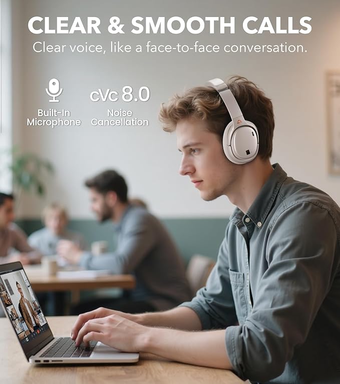 - CLEAR CALLS, JUST LIKE FACE TO FACE: With powerful cVc 8.0 noise cancellation, these over-ear noise cancelling headphones block background noise so your voice comes through crisp and natural. Perfect for meetings, voice chats, or video calls, they make every conversation feel effortless and in-person