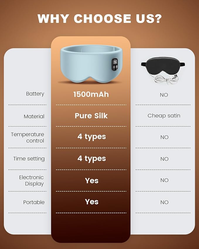- 【Relieve eye fatigue and release stress】The graphene heating layer evenly distributes heat to the eyelids, promotes blood circulation, relieves eye fatigue, and relieves insomnia. You can adjust the temperature (4 levels) and timer usage time (4 types) according to your preferences. It is an best choice whether it is for nighttime sleep, long-distance flights, or relaxing after get off work.