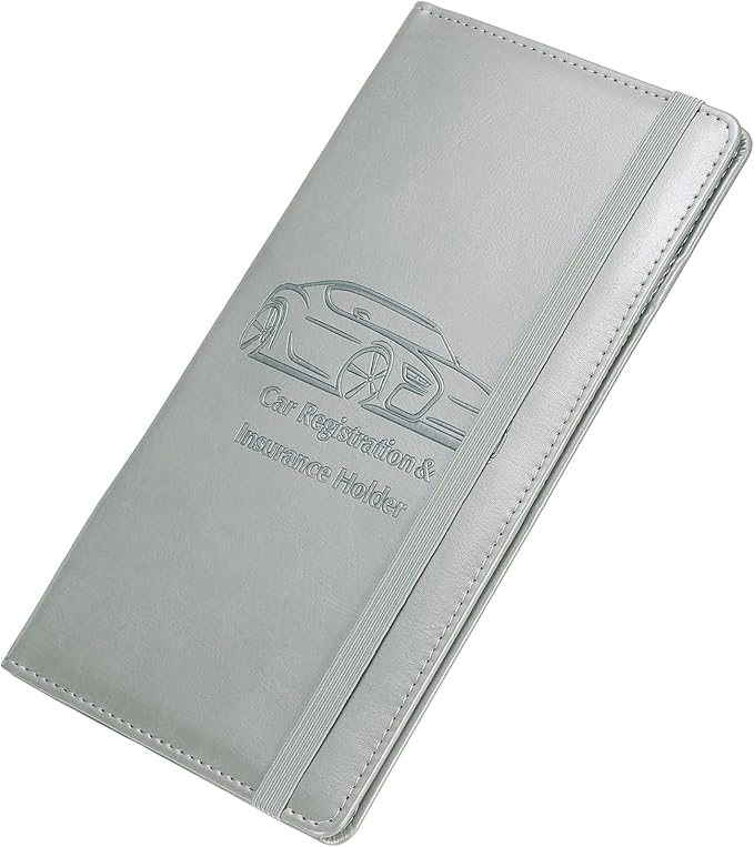 HARFINGTON Car Registration and Insurance Holder 9.45" x 5.04" PU Leather Vehicle Glove Box Organizer Storage Accessories Men Women Car ID Holder for License ID Card Bank Card, Gray