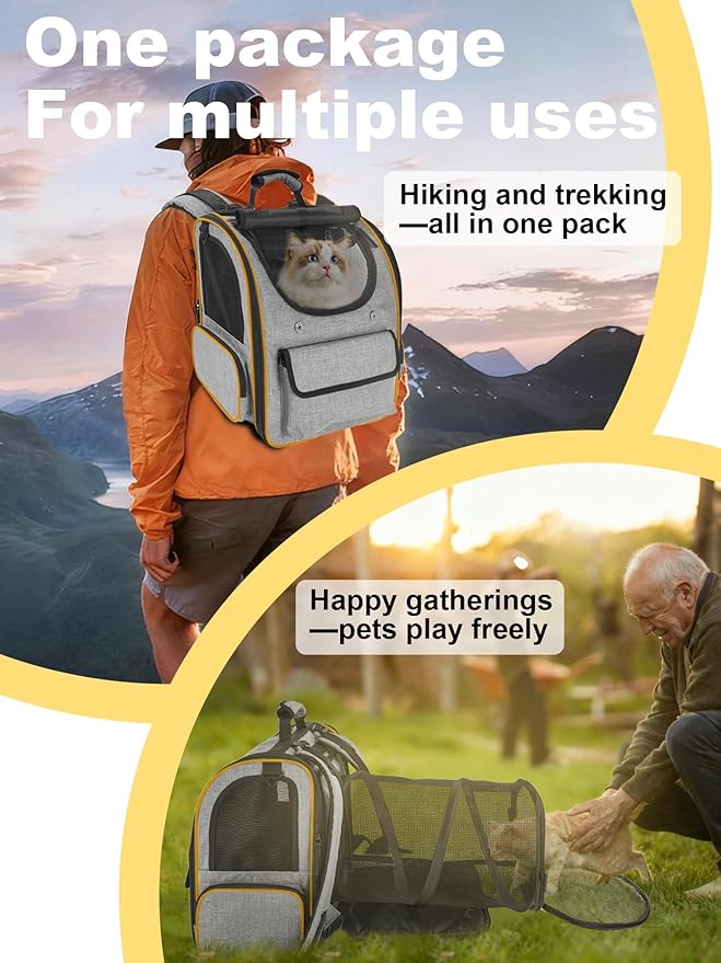 - 【Expandable Tunnel for Comfort and Fun】This pet backpack not only makes you feel relaxed and comfortable when carrying a cat or a small dog, but also features a unique circular expandable tunnel that can be opened for outdoor rest, picnics or play. Your pet can stretch, explore or take a nap in the tunnel, providing a safe and comfortable environment whether you are on the move or relaxing together.