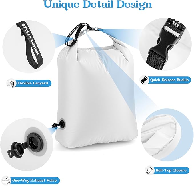 - 3. Space Saver: Featuring a built-in one-way air release valve, just squeeze the bag to push out the air—no pump needed. It's the smarter way to pack for travel and outdoor adventures, so you can bring more and worry less.