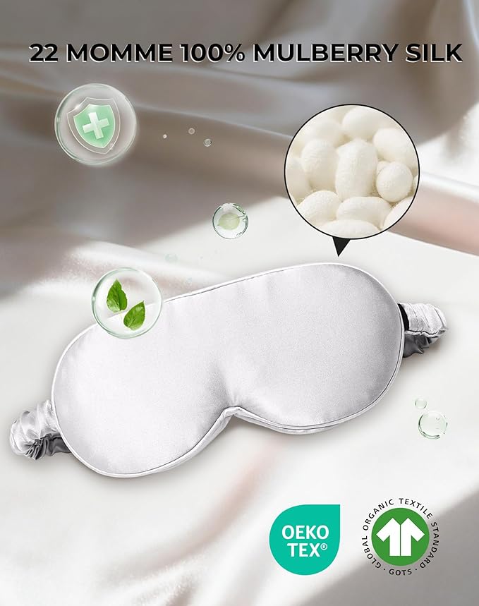 - 100% PURE MULBERRY SILK: Crafted from 100% 6A grade mulberry silk, SILKSILKY silk sleep mask is luxuriously soft, smooth, and breathable. Certified by OEKO-TEX Standard 100 and GOTS, it is naturally hypoallergenic, helping reduce friction, prevent wrinkles, and protect the delicate eye area while improving overall sleep quality.