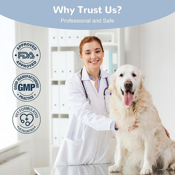 - Scientifically Vet-formulated. Our dog anxiety chews are vet-formulated and produced in facilities that meet FDA guidelines and strict GMP standards. Effective and safe for your dog's emotional health. If you have any questions, please contact us at any time.