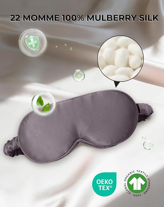 - 100% PURE MULBERRY SILK: Crafted from 100% 6A grade mulberry silk, SILKSILKY silk sleep mask is luxuriously soft, smooth, and breathable. Certified by OEKO-TEX Standard 100 and GOTS, it is naturally hypoallergenic, helping reduce friction, prevent wrinkles, and protect the delicate eye area while improving overall sleep quality.