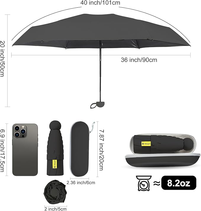 - 【Compact Travel Umbrella for Purse – Fits Most Handbags & Backpacks】- This mini umbrellafolds down to a super compact and portable6.9 inches, designed to fit in most clutch purses, tote bags, backpacks, or glove compartments. Weighing less than a typical smartphone, it's a lightweight and travel-size umbrellafor women, men, and kidson the go