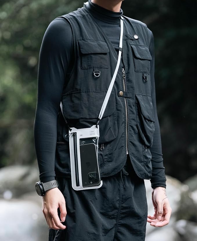 - Clear Touchscreen & Face ID Ready – Transparent phone pouch allows smooth touchscreen use, Face ID unlocking, and clearer photos and videos underwater.