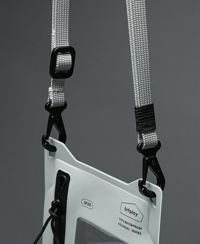 bitplay AquaSeal IPX8 Waterproof Phone Pouch, Outdoor Dry Bag with Adjustable Lanyard for Universal Phone Case, Cement Grey