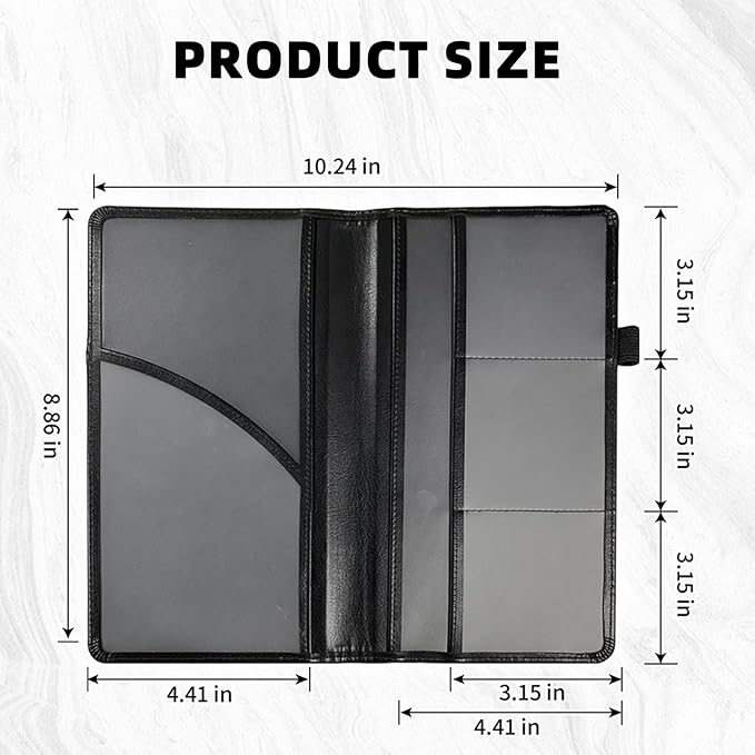 - Size: slim and cute car registration and insurance holder size 9.5" x 5.1", slim profile and lightweight design, size for any glove box and Carry-on shoulder bagor console compartment, keeping your essentials organized without taking up space