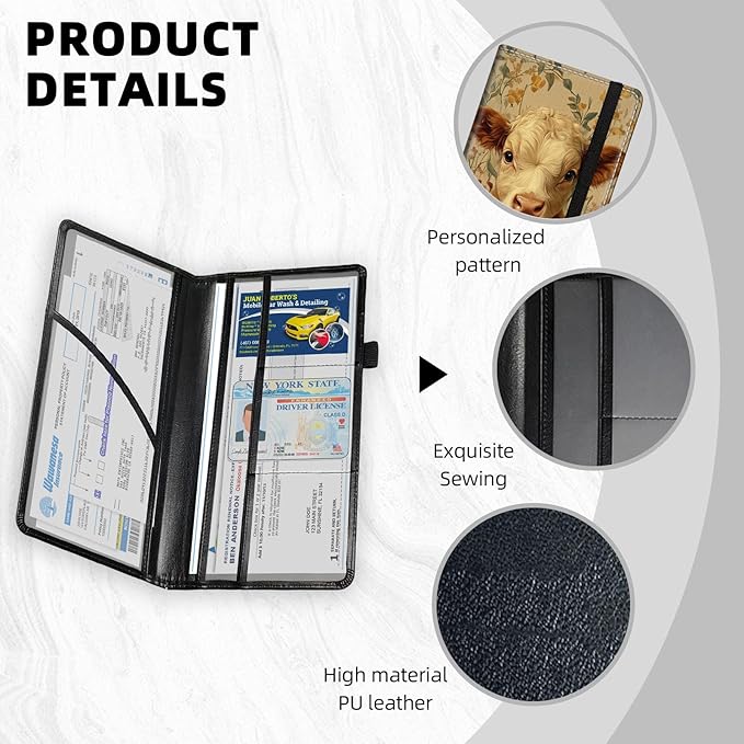 - Size: slim and cute car registration and insurance holder size 9.5" x 5.1", slim profile and lightweight design, size for any glove box and Carry-on shoulder bagor console compartment, keeping your essentials organized without taking up space