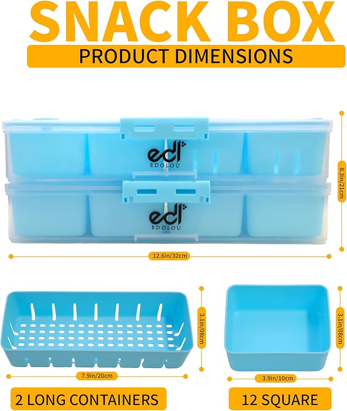 - 14 Divided Compartments for Freshness & Variety: Each Snackle Box features 14 separate compartments—perfect for storing a wide range of snacks like fruits, nuts, cheese cubes, candies, veggies, or charcuterie bites. Keep everything neatly divided and fresh without flavor mixing. The airtight silicone-seal lid prevents leaks and keeps contents crisp and delicious, even during travel.