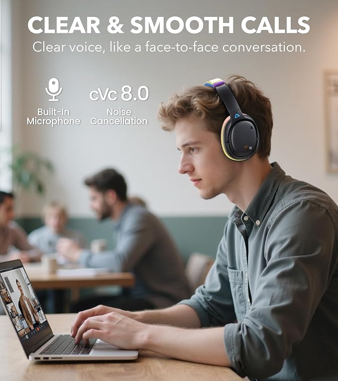 - CLEAR CALLS, JUST LIKE FACE TO FACE: With powerful cVc 8.0 noise cancellation, these over-ear noise cancelling headphones block background noise so your voice comes through crisp and natural. Perfect for meetings, voice chats, or video calls, they make every conversation feel effortless and in-person