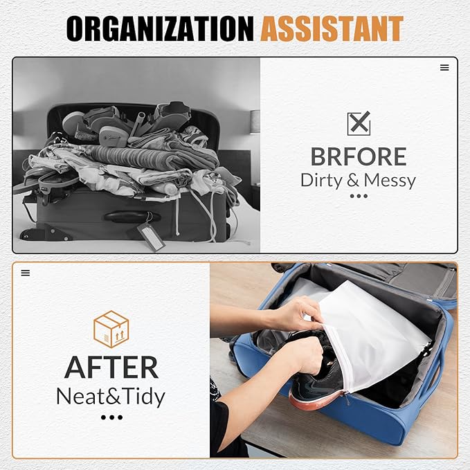- PE Material: Shoe packing cubes for travel have a simple and stylish appearance, made of PE material, so it is not only waterproof and dustproof, but also sturdy and reusable