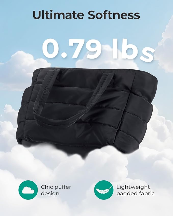 BAGSMART Tote Bag for Women, Lightweight Puffy Tote Bag with Compartments Shoulder Bag Handbag for Travel, Work, Gym