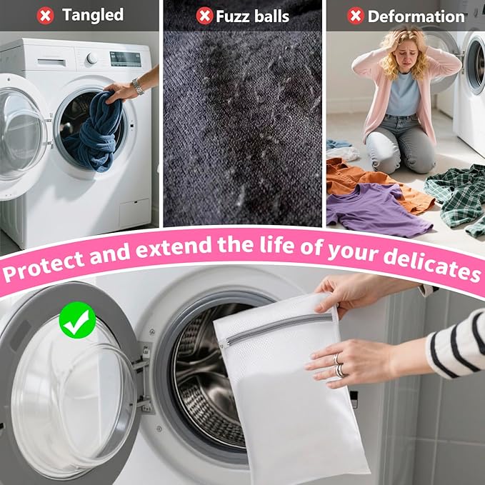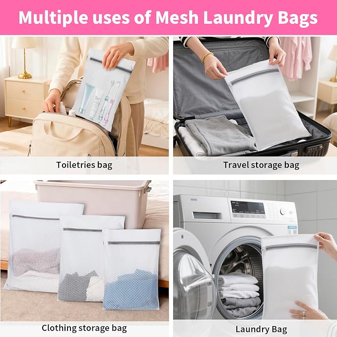 Laundry Bag Backpack with 3 Sizes Mesh Wash Bags and Shoulder Straps Foldable Clothes Hamper Bag with Drawstring Closure for College, Apartment, Laundromat (Pink)