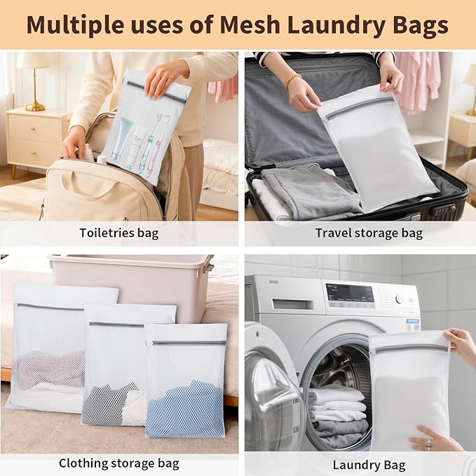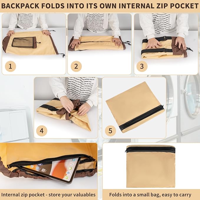 Laundry Bag Backpack with 3 Sizes Mesh Wash Bags and Shoulder Straps Foldable Clothes Hamper Bag with Drawstring Closure for College, Apartment, Laundromat (Brown)