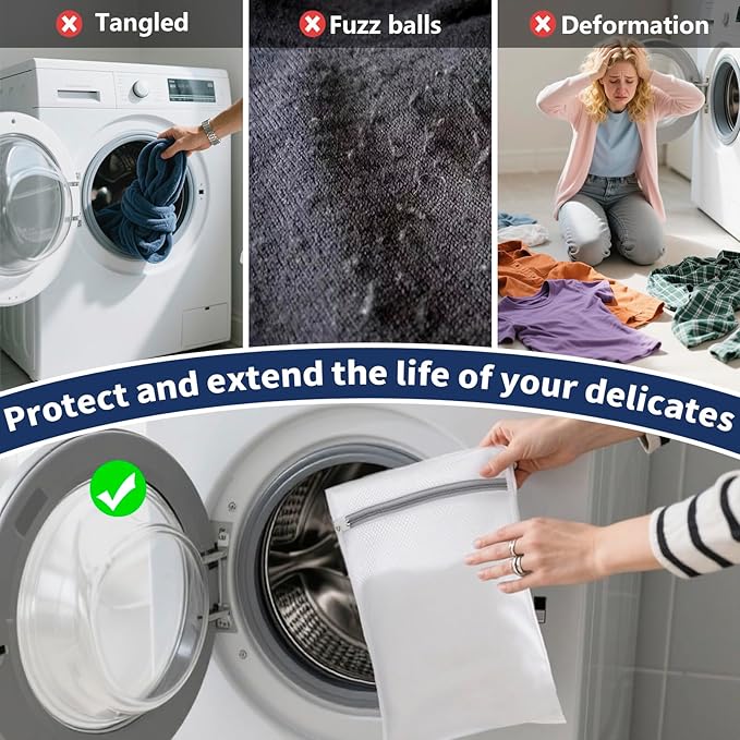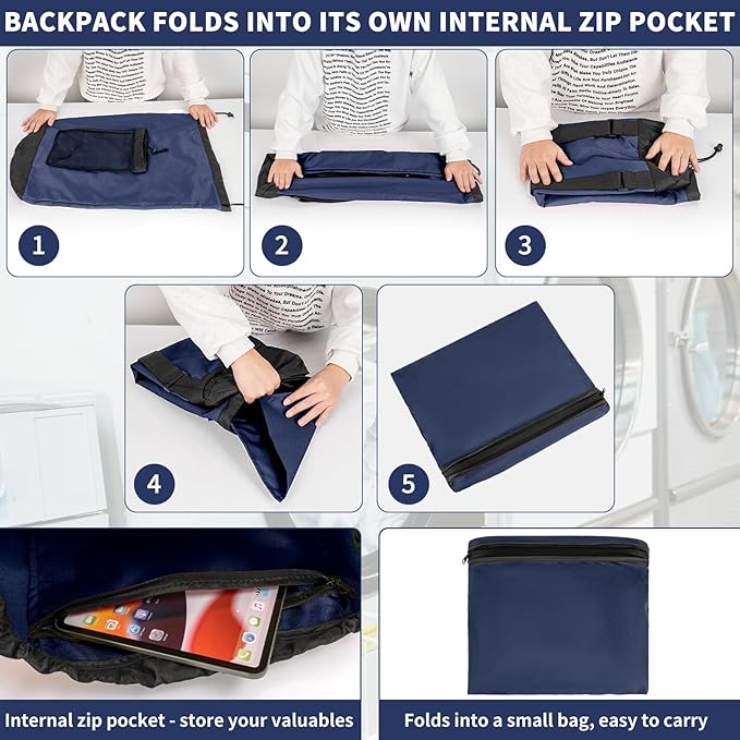 Laundry Bag Backpack with 3 Sizes Mesh Wash Bags and Shoulder Straps Foldable Clothes Hamper Bag with Drawstring Closure for College, Apartment, Laundromat (Dark Blue)