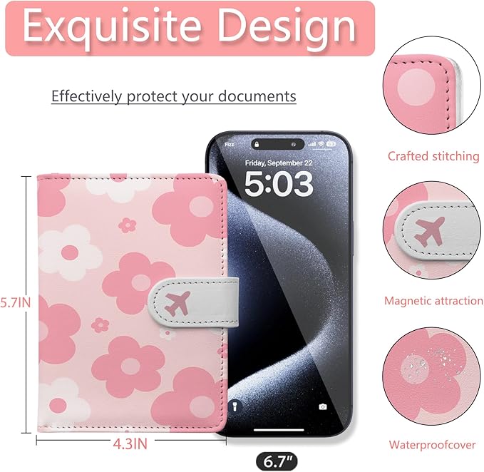 - Choose from a Variety of Cute, Aesthetic Designs Elevate your travel style by choosing from our collection of beautiful patterns. Crafted from high-quality, soft-touch PU leather, this cover is lightweight yet durable. With multiple charming designs to select from, it's a perfect accessory for both women and men.