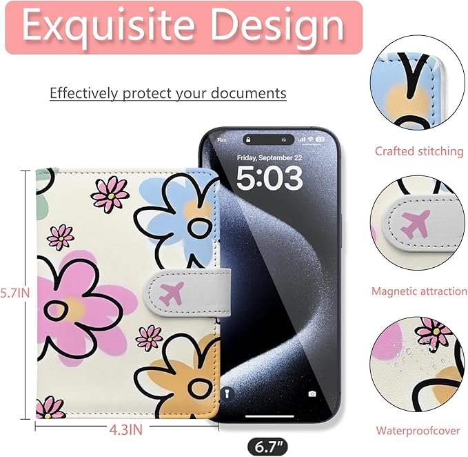 - Choose from a Variety of Cute, Aesthetic Designs Elevate your travel style by choosing from our collection of beautiful patterns. Crafted from high-quality, soft-touch PU leather, this cover is lightweight yet durable. With multiple charming designs to select from, it's a perfect accessory for both women and men.