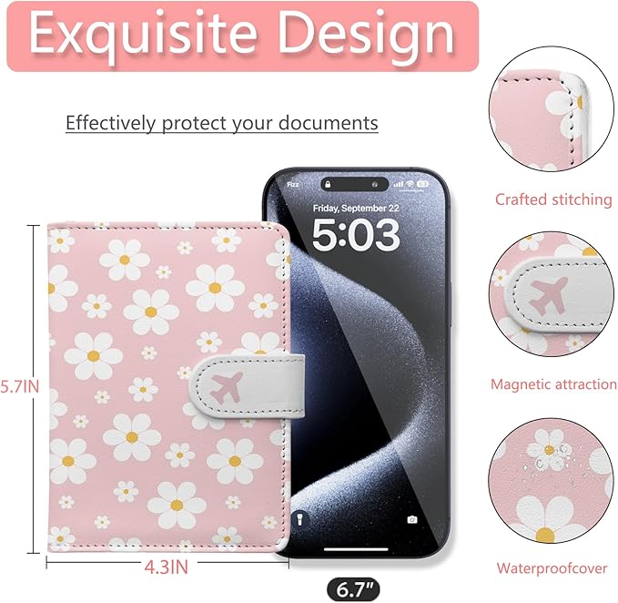 - Choose from a Variety of Cute, Aesthetic Designs Elevate your travel style by choosing from our collection of beautiful patterns. Crafted from high-quality, soft-touch PU leather, this cover is lightweight yet durable. With multiple charming designs to select from, it's a perfect accessory for both women and men.