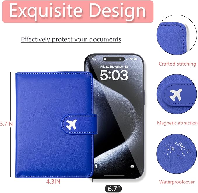 - Instant Magnetic Access & Secure Closure Say goodbye to fumbling! Open and close your passport holder effortlessly with the smooth magnetic clasp. It provides quick, one-handed access to your travel essentials while ensuring everything stays securely locked inside during your journey.